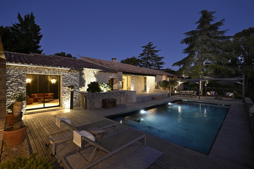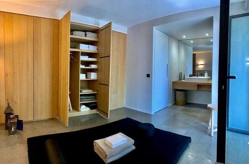 You'll have direct access to the swimming pool, all lined in black mosaic, a heated pool that's also entirely reserved for you.